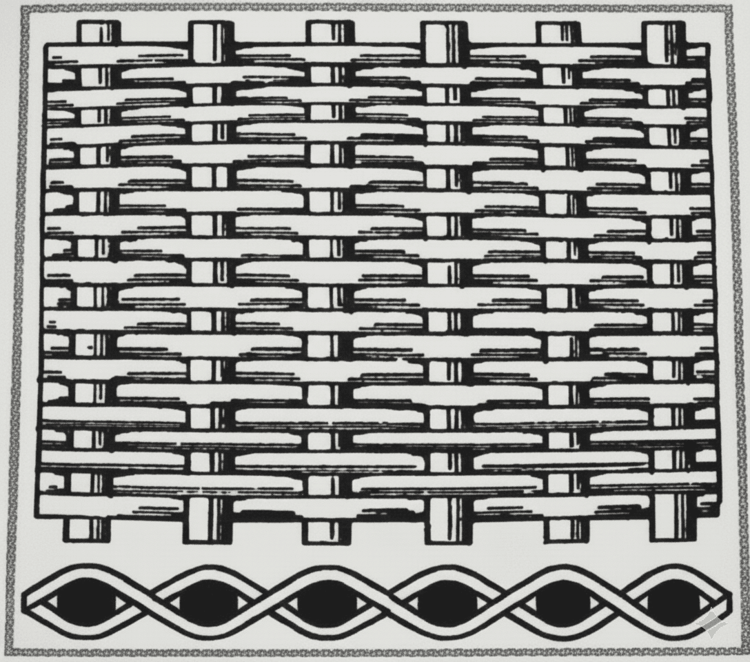 เป็นรูปแบบการทอที่มีการใช้ลวดในแนวตั้งที่มีเส้นโตกว่าลวดในแนวนอน และเส้นลวดแนวตั้งจะมีจำนวนน้อยกว่าเส้นลวดแนวนอน ทอขึ้นลงทีละ 1 ช่อง ทำให้มีโครงสร้างที่แข็งแรง ตาข่ายชนิดนี้โดยทั่วไปเรียกว่าตาข่ายลายเสื่อ
