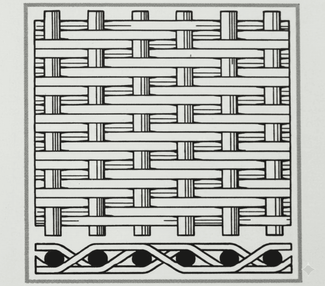 เป็นรูปแบบการทอที่มีการใช้งานแพร่หลายมากที่สุด โดยการใช้ลวดขนาดเท่ากันทอขึ้นลงทั้งด้านตั้งและนอนทีละ 1 ช่อง ลักษณะเนื้อตะแกรงจะทอแน่นกว่า TWILL WEAVE